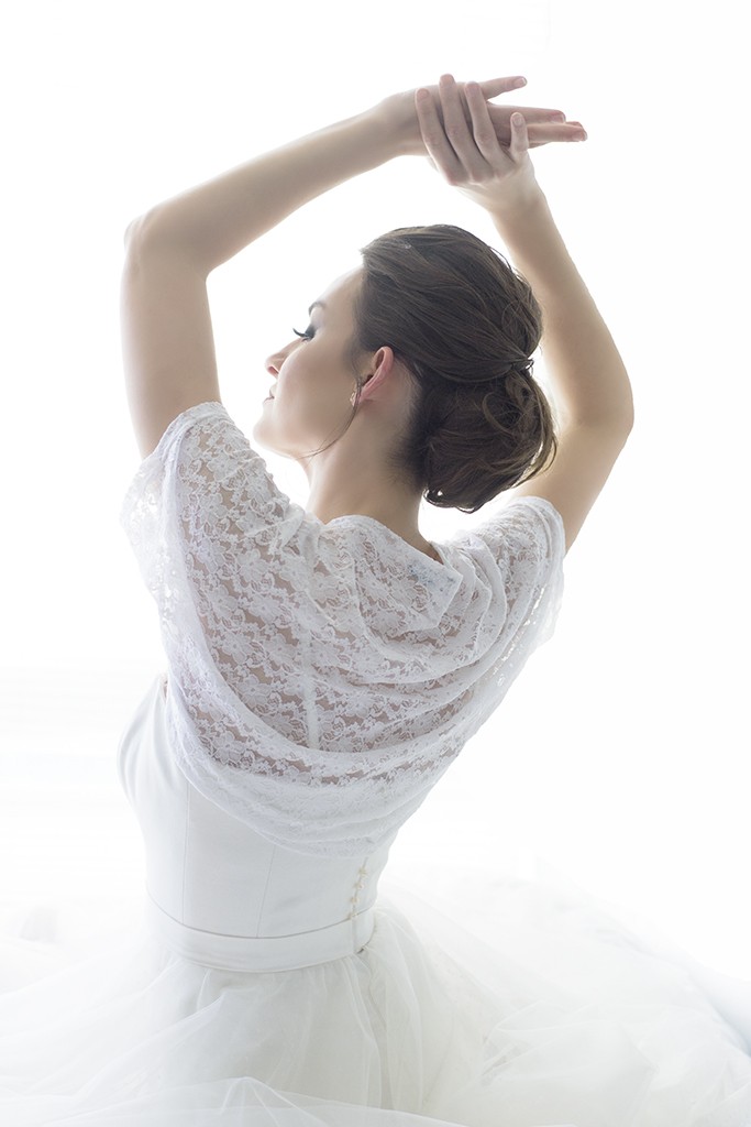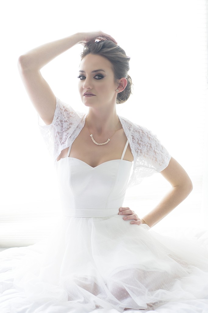 עליונית תחרה שרוול קצר - לבנה